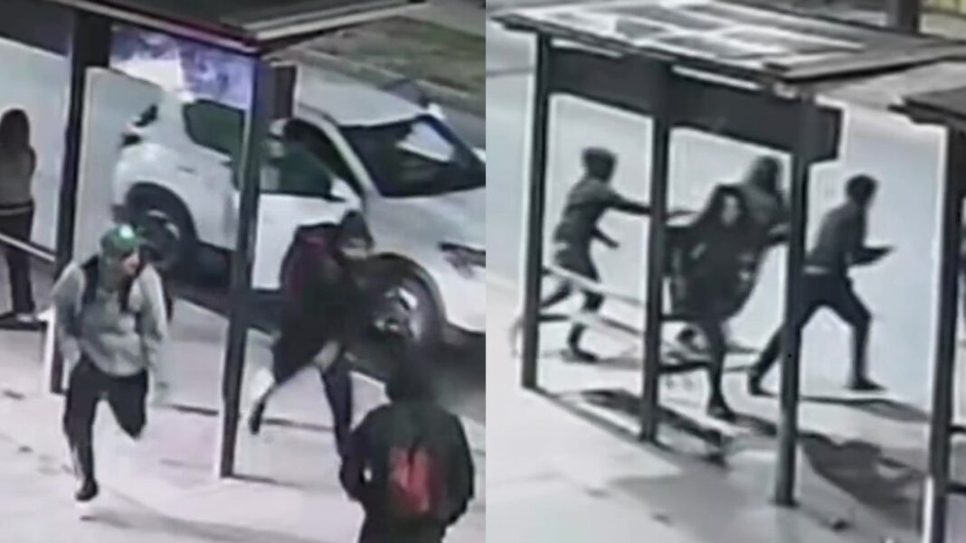 Los delincuentes llegaron en un auto blanco, cuatro de ellos bajaron y atacaron de forma coordinada a una persona mientras otros pasajeros lograron escapar.