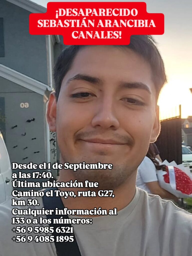 A casi cuatro meses de la desaparición de Sebastián Arancibia Canales, de 25 años, su paradero sigue siendo desconocido. El joven, padre de un niño, fue visto por última vez el 1 de septiembre, cuando salió desde su domicilio en Puente Alto con la intención de comprar sushi a pocas cuadras de su casa, pero nunca regresó.
