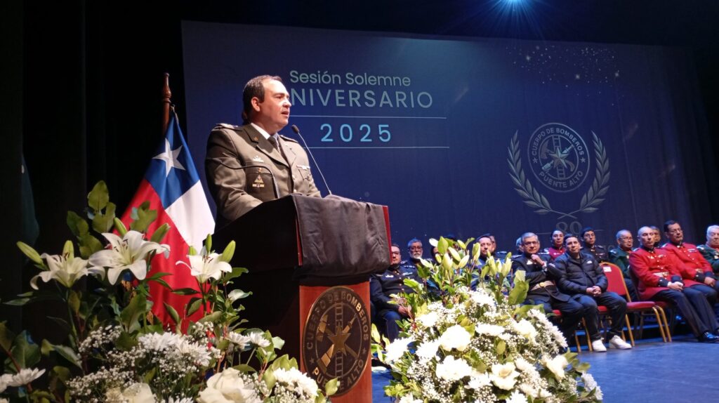 El Cuerpo de Bomberos de Puente Alto conmemoró el domingo 5 de octubre su 89° aniversario institucional con una ceremonia solemne realizada en el Centro Cultural Alcalde Juan Estay, donde participaron autoridades locales, regionales y representantes de las nueve compañías que integran la institución.