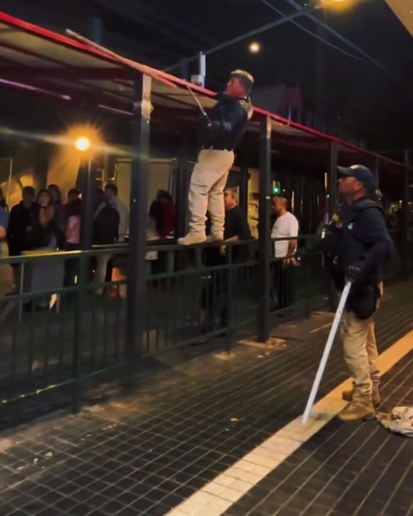 Durante el procedimiento, los equipos municipales detectaron que algunos sujetos mantenían ocultos fierros, lanzas y otros objetos contundentes en la parte superior de los paraderos. Según se informó, estos elementos eran utilizados para agredir a transeúntes, enfrentarse entre ellos o ser arrojados contra personal municipal y Carabineros durante fiscalizaciones.