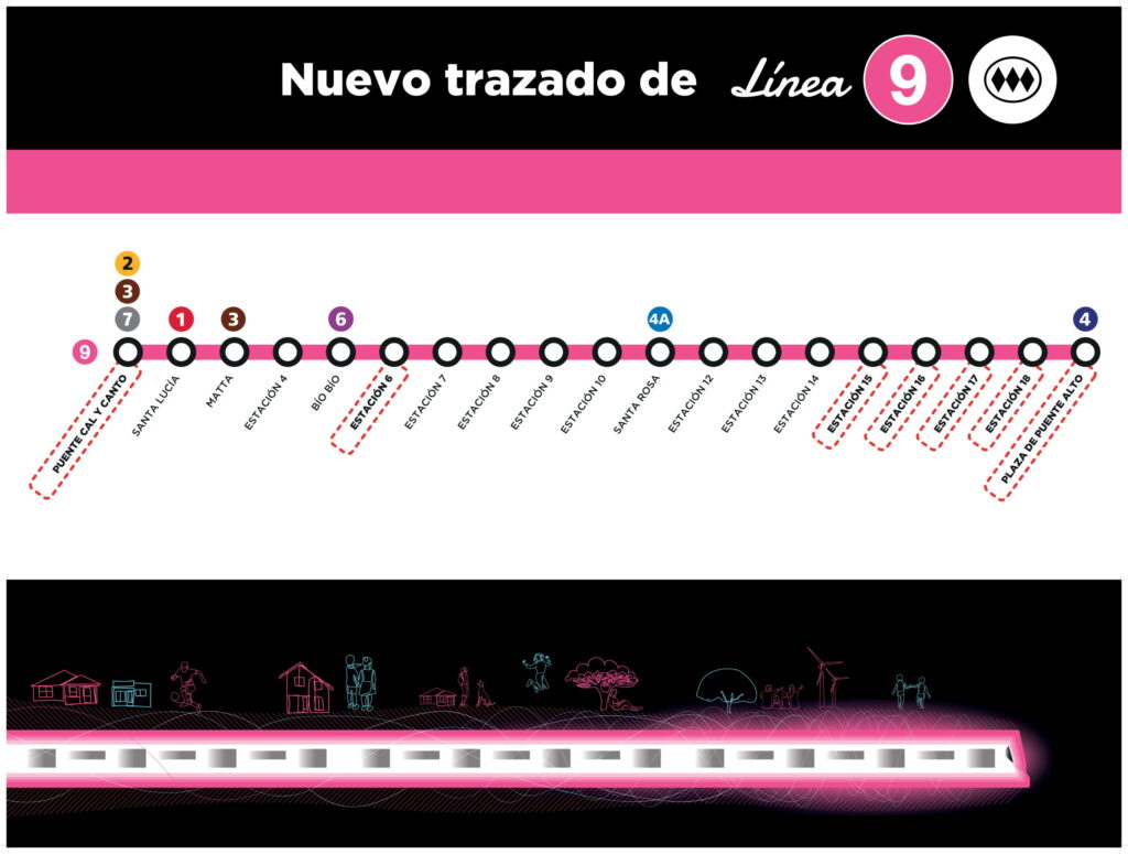La Línea 9, de acuerdo con antecedentes entregados a Puente Alto al Día por Metro de Santiago, contempla un trazado de 27 kilómetros y 19 estaciones, conectando ocho comunas entre Recoleta y Puente Alto a través del eje de avenida Santa Rosa, y beneficiando a cerca de dos millones de habitantes.
