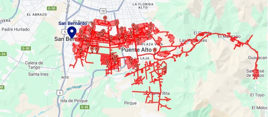 Las comunas que han reportado interrupciones de suministro son El Bosque, La Florida, La Granja, Ñuñoa, Macul, San Miguel, Cerro Navia, La Pintana, Pirque, Puente Alto, San Bernardo, San José de Maipo, Peñalolén y San Ramón.