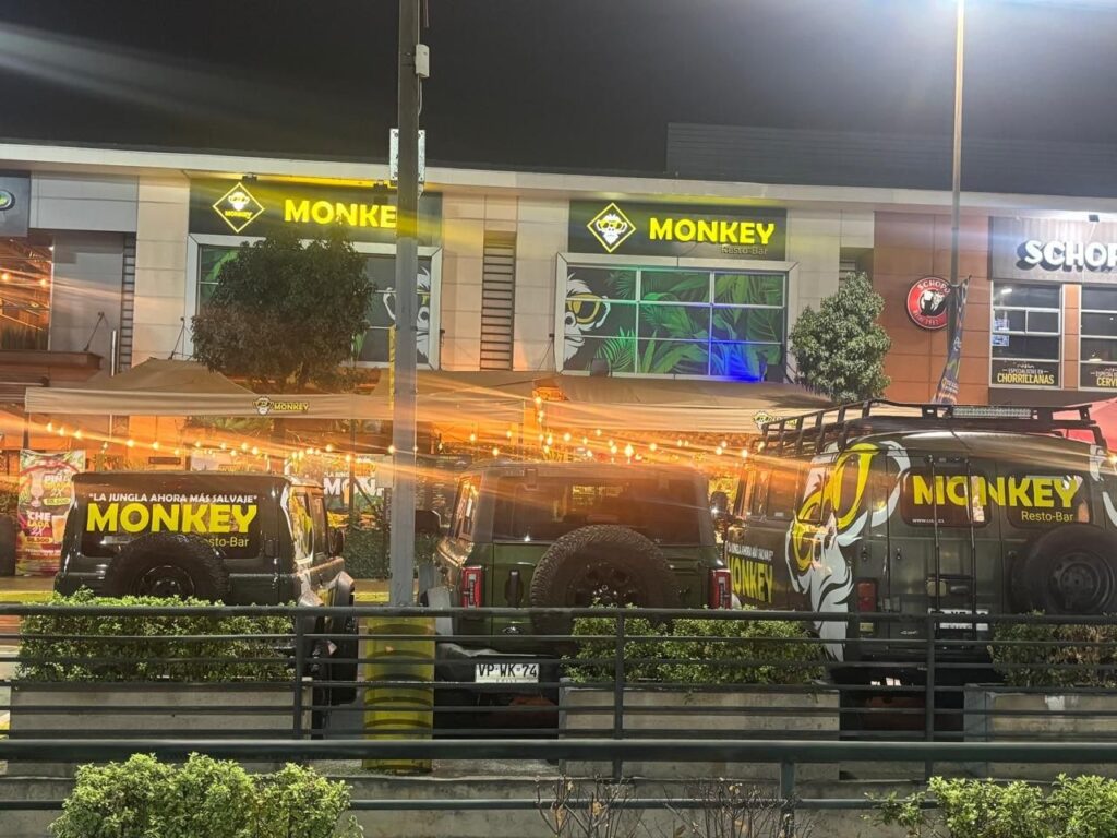 A esta experiencia se suman iniciativas novedosas, como la incorporación de vehículos que forman parte del sello del lugar. Por una parte, una llamativa van Bukhanka permite ir a buscar a cumpleañeros y trasladarlos junto a sus invitados hasta el local, convirtiendo la celebración en una experiencia que comienza incluso antes de llegar. A ello se suma un Suzuki Jimny, ambos integrados a la identidad de Monkey y pensados para reforzar su propuesta de entretenimiento.