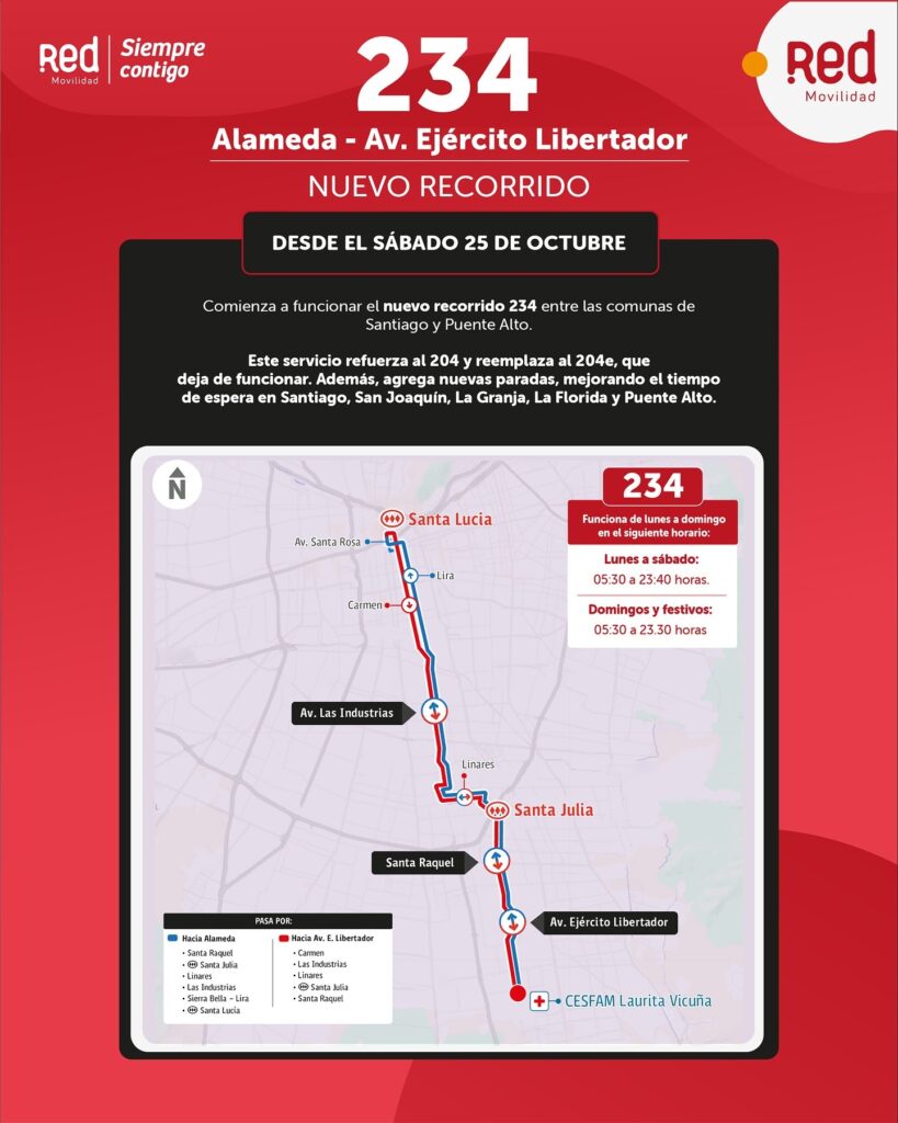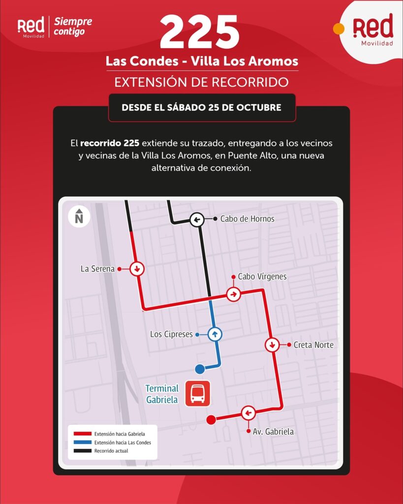 A partir de este sábado 25 de octubre, el sistema de transporte público RED Movilidad implementará tres nuevos recorridos y una extensión que beneficiarán directamente a sectores residenciales de Puente Alto.