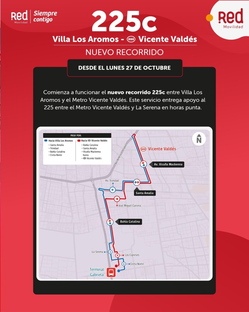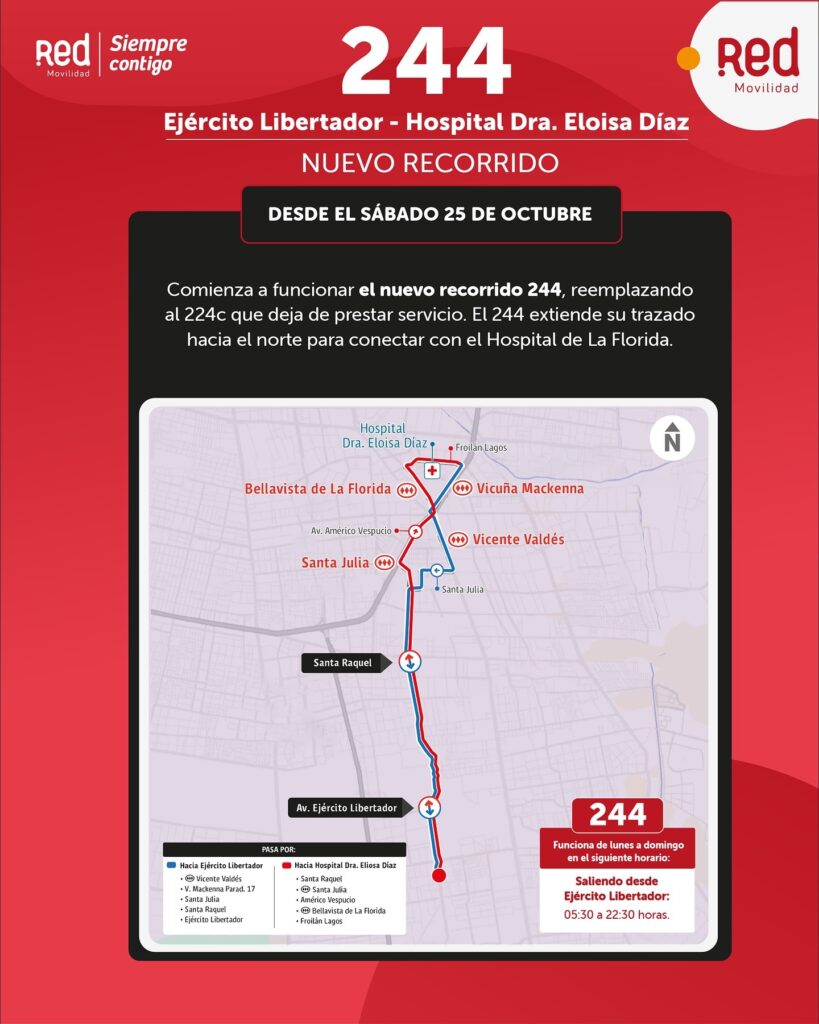 Se trata de los nuevos servicios 234 (Alameda – Ejército Libertador), 244 (Ejército Libertador – Hospital Dra. Eloísa Díaz) y 225C (Villa Los Aromos – Vicente Valdés), junto a la extensión del recorrido 225 hasta Villa Los Aromos, iniciativa que busca acercar el transporte público a más vecinos de la comuna.