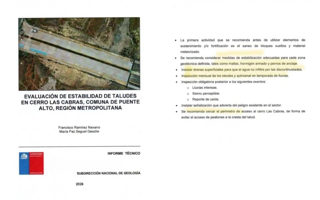 Ossandón, en cambio, afirmó que las observaciones contenidas en el estudio corresponden a medidas técnicas factibles. “El propio informe menciona señaléticas, mallas de protección, hormigón, pernos de anclaje y adecuación de tuberías. Son medidas técnicas claras y perfectamente abordables. Nada de otro mundo”, sostuvo.
