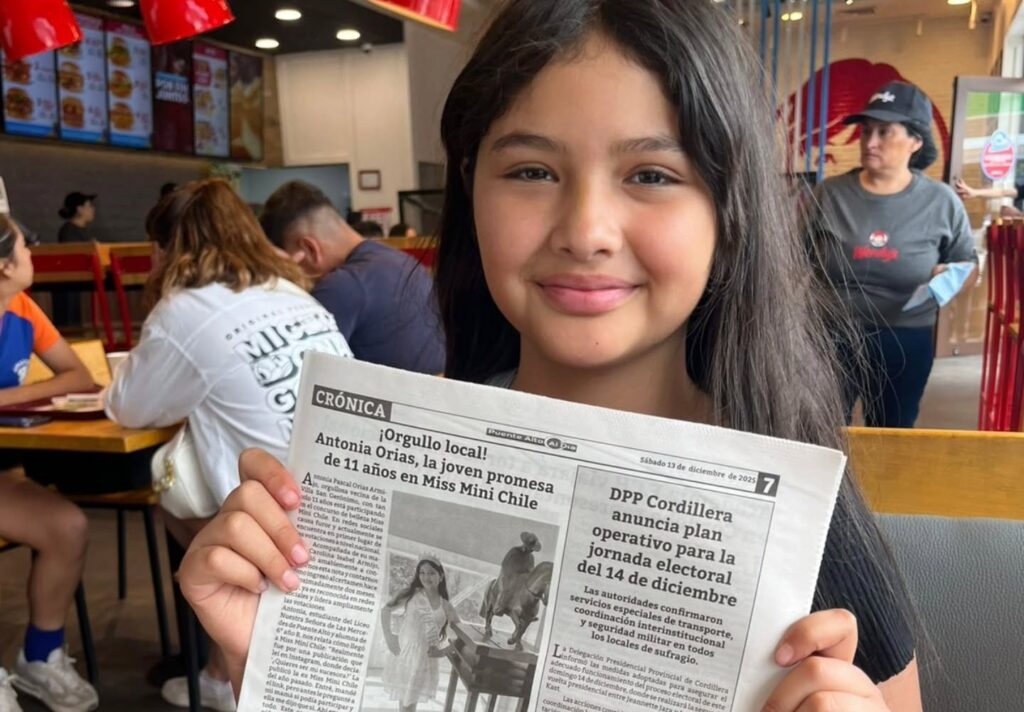 Desde una mirada joven, Antonia Orias, de 14 años y candidata al Miss Mini Chile, pone el foco en el bienestar social. Sueña con un 2026 con menos abandono animal, más igualdad de oportunidades para los niños y un mayor apoyo a los talentos de la comuna a través de becas e incentivos.
