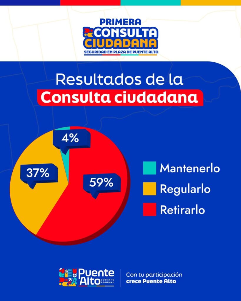 La Municipalidad de Puente Alto dio a conocer este lunes 2 de febrero los resultados de la primera consulta ciudadana vinculante sobre seguridad y regulación del comercio en la Plaza de Puente Alto, proceso que buscó definir el futuro del comercio ambulante en el principal espacio cívico de la comuna.