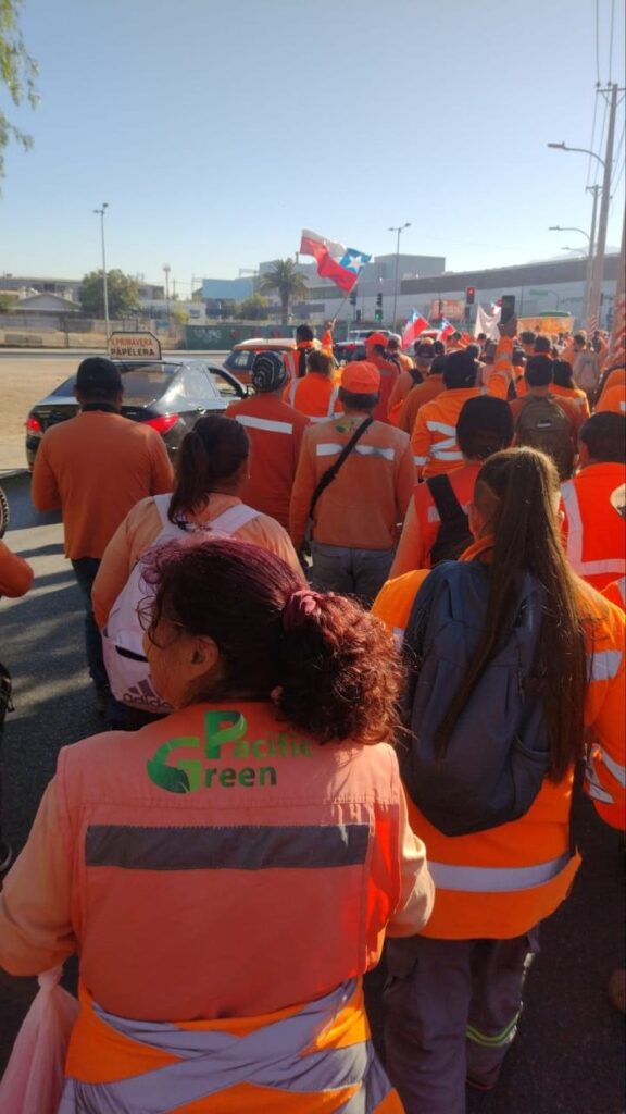 Durante la mañana de este martes, trabajadores de la empresa Pacific Green Chile SpA realizan una marcha por el centro de Puente Alto, en una nueva jornada de movilizaciones en el marco del conflicto que sostienen por sueldos impagos y cotizaciones adeudadas.