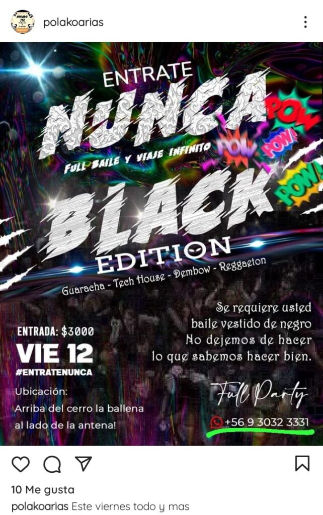 Según la presidenta de la Junta de Vecinos Nueva Lomas Oriente, en el lugar se organizaron eventos tipo fiestas rave que —afirma— eran difundidos a través de redes sociales mediante flyers digitales. “Se llenaba de gente”, señala, agregando que en algunas ocasiones debieron realizar denuncias para que concurrieran fiscalizadores o personal policial.